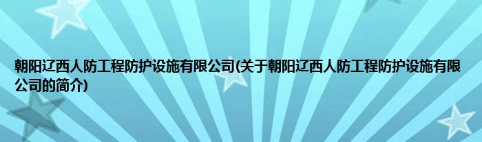 本文关于朝阳辽西人防工程防护设施有限公司的简介就讲解完毕,希望对大家有所帮助。