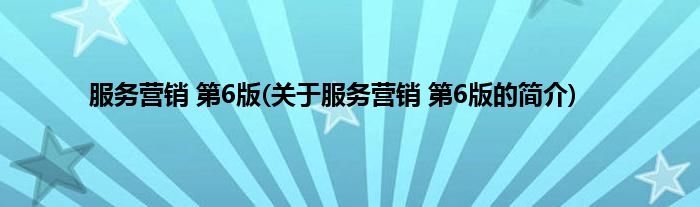 大家好,服务营销 第6版,关于服务营销 第6版的简介很多人还不知道,现在让我们一起来看看吧!