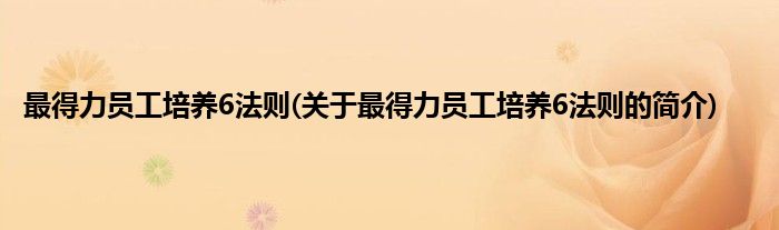 本文关于最得力员工培养6法则的简介就讲解完毕,希望对大家有所帮助。