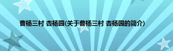 曹杨三村杏杨园(关于曹杨三村杏杨园的简介)