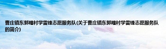 大家好,曹庄镇东郭疃村学雷锋志愿服务队,关于曹庄镇东郭疃村学雷锋志愿服务队的简介很多人还不知道,现在让我们一起来看看吧!