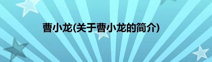 本文关于曹小龙的简介就讲解完毕,希望对大家有所帮助。