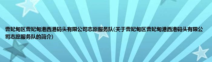 1、 曹妃甸区曹妃甸港西港码头有限公司志愿服务队是由曹妃甸区曹妃甸港集团股份有限公司志愿服务队领导下的志愿团体。