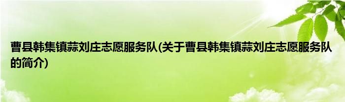 1、 曹县韩集镇蒜刘庄志愿服务队是由曹县韩集镇志愿服务队领导下的志愿团体。