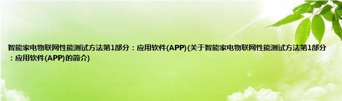1、 《智能家电物联网性能测试方法第1部分:应用软件(APP)》是2020年12月26日实施的一项行业标准。