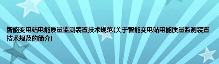 大家好,智能变电站电能质量监测装置技术规范,关于智能变电站电能质量监测装置技术规范的简介很多人还不知道,现在让我们一起来看看吧!