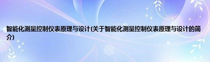 大家好,智能化测量控制仪表原理与设计,关于智能化测量控制仪表原理与设计的简介很多人还不知道,现在让我们一起来看看吧!