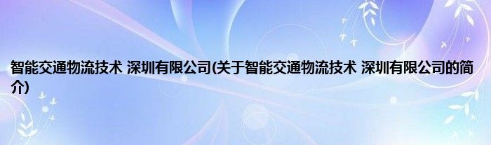 大家好,智能交通物流技术 深圳有限公司,关于智能交通物流技术 深圳有限公司的简介很多人还不知道,现在让我们一起来看看吧!