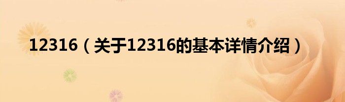 本文关于12316的基本详情介绍就讲解完毕,希望对大家有所帮助。