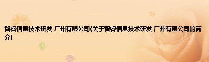 大家好,智睿信息技术研发 广州有限公司,关于智睿信息技术研发 广州有限公司的简介很多人还不知道,现在让我们一起来看看吧!