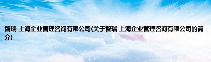 本文关于智瑞 上海企业管理咨询有限公司的简介就讲解完毕,希望对大家有所帮助。