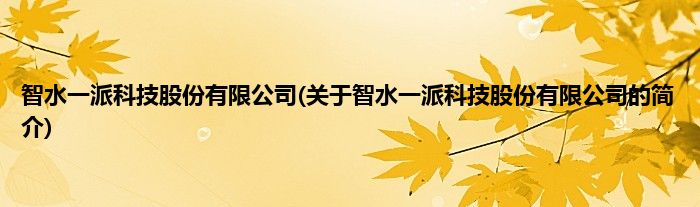 本文关于智水一派科技股份有限公司的简介就讲解完毕,希望对大家有所帮助。