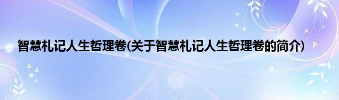 本文关于智慧札记人生哲理卷的简介就讲解完毕,希望对大家有所帮助。