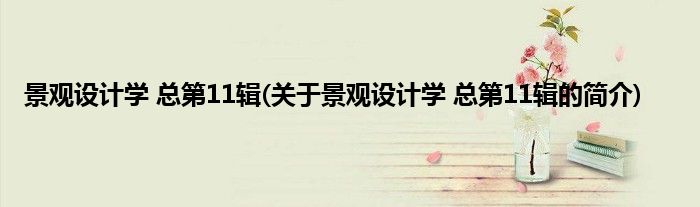 本文关于景观设计学 总第11辑的简介就讲解完毕,希望对大家有所帮助。