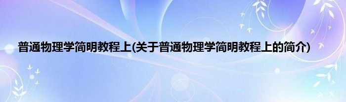 大家好,普通物理学简明教程上,关于普通物理学简明教程上的简介很多人还不知道,现在让我们一起来看看吧!