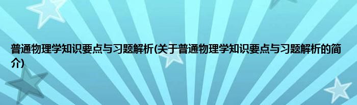 本文关于普通物理学知识要点与习题解析的简介就讲解完毕,希望对大家有所帮助。