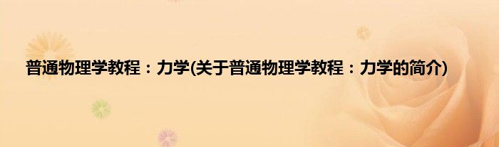 本文关于普通物理学教程:力学的简介就讲解完毕,希望对大家有所帮助。