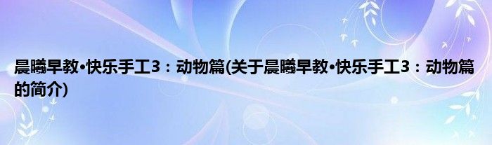 本文关于晨曦早教·快乐手工3:动物篇的简介就讲解完毕,希望对大家有所帮助。