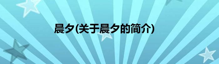 大家好,晨夕,关于晨夕的简介很多人还不知道,现在让我们一起来看看吧!