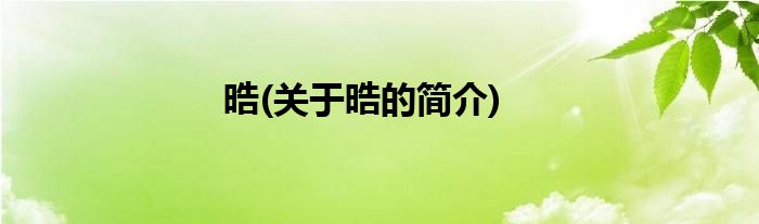 大家好,晧,关于晧的简介很多人还不知道,现在让我们一起来看看吧!