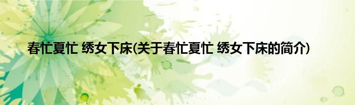 大家好,春忙夏忙,绣女下床,关于春忙夏忙,绣女下床的简介很多人还不知道,现在让我们一起来看看吧!