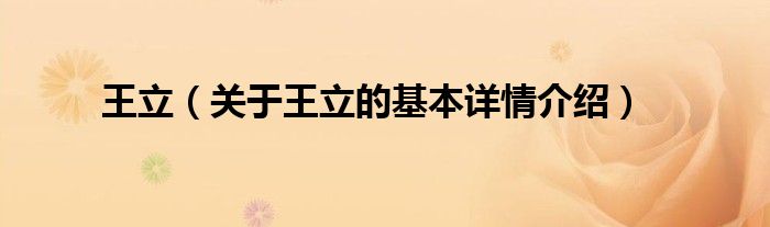 本文关于王立的基本详情介绍就讲解完毕,希望对大家有所帮助。