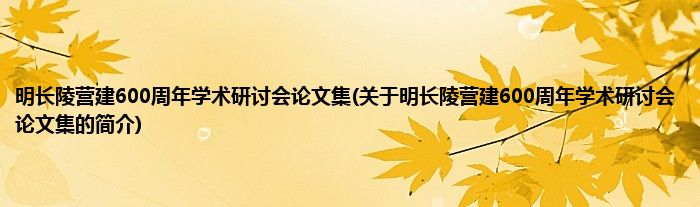 大家好,明长陵营建600周年学术研讨会论文集,关于明长陵营建600周年学术研讨会论文集的简介很多人还不知道,现在让我们一起来看看吧!
