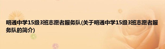 本文关于明通中学15级3班志愿者服务队的简介就讲解完毕,希望对大家有所帮助。