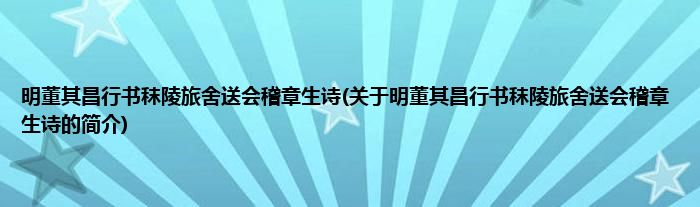 本文关于明董其昌行书秣陵旅舍送会稽章生诗的简介就讲解完毕,希望对大家有所帮助。