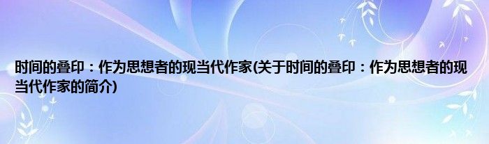 本文关于时间的叠印:作为思想者的现当代作家的简介就讲解完毕,希望对大家有所帮助。