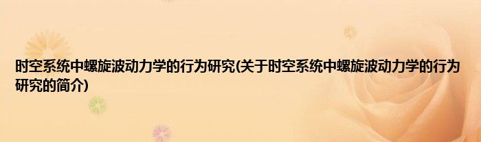 大家好,时空系统中螺旋波动力学的行为研究,关于时空系统中螺旋波动力学的行为研究的简介很多人还不知道,现在让我们一起来看看吧!