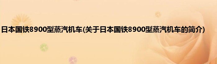 1、 8900型蒸汽机车,是日本国有铁道拥有的蒸汽机车车款之一,由国铁前身铁道院从美国购入。