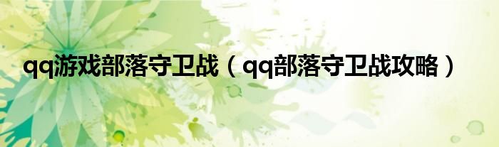 大家好,精选小编来为大家解答以上问题。qq游戏部落守卫战,qq部落守卫战攻略很多人还不知道,现在让我们一起来看看吧!