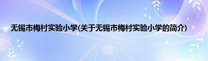 本文关于无锡市梅村实验小学的简介就讲解完毕,希望对大家有所帮助。