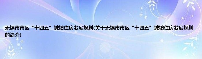 本文关于无锡市市区“十四五”城镇住房发展规划的简介就讲解完毕,希望对大家有所帮助。