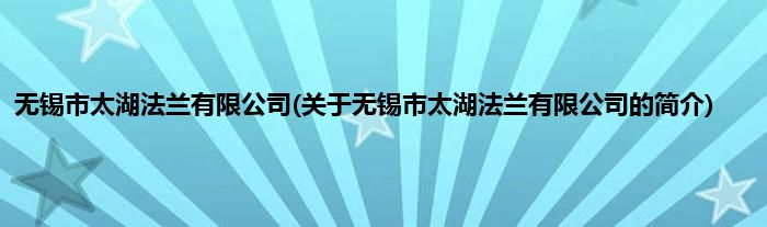 本文关于无锡市太湖法兰有限公司的简介就讲解完毕,希望对大家有所帮助。