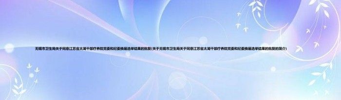 大家好,无锡市卫生局关于同意江苏省太湖干部疗养院党委和纪委换届选举结果的批复,关于无锡市卫生局关于同意江苏省太湖干部疗养院党委和纪委换届选举结果的批复的简介很多人还不知道,现在让我们一起来看看吧!