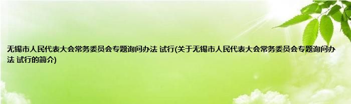 大家好,无锡市人民代表大会常务委员会专题询问办法 试行,关于无锡市人民代表大会常务委员会专题询问办法 试行的简介很多人还不知道,现在让我们一起来看看吧!