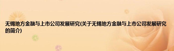 本文关于无锡地方金融与上市公司发展研究的简介就讲解完毕,希望对大家有所帮助。