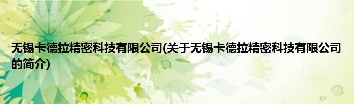 本文关于无锡卡德拉精密科技有限公司的简介就讲解完毕,希望对大家有所帮助。