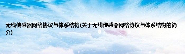 大家好,无线传感器网络协议与体系结构,关于无线传感器网络协议与体系结构的简介很多人还不知道,现在让我们一起来看看吧!