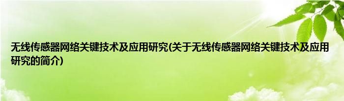 本文关于无线传感器网络关键技术及应用研究的简介就讲解完毕,希望对大家有所帮助。