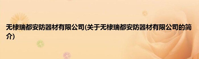 本文关于无棣瑞都安防器材有限公司的简介就讲解完毕,希望对大家有所帮助。