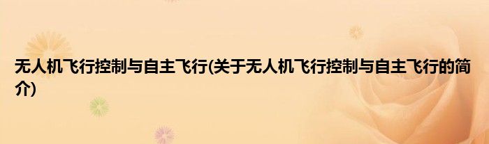 本文关于无人机飞行控制与自主飞行的简介就讲解完毕,希望对大家有所帮助。