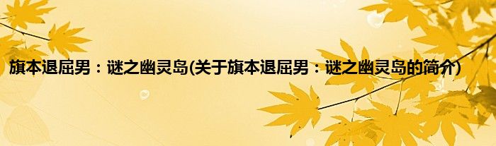 本文关于旗本退屈男:谜之幽灵岛的简介就讲解完毕,希望对大家有所帮助。