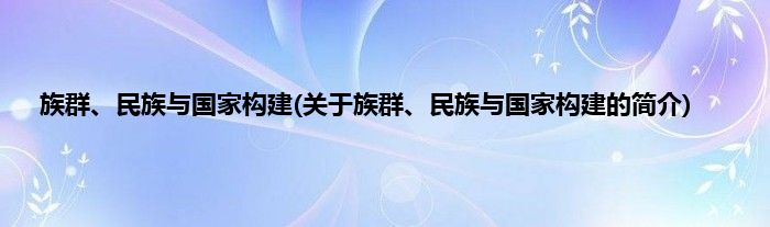 本文关于族群、民族与国家构建的简介就讲解完毕,希望对大家有所帮助。