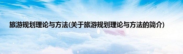 本文关于旅游规划理论与方法的简介就讲解完毕,希望对大家有所帮助。