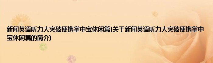 本文关于新闻英语听力大突破便携掌中宝休闲篇的简介就讲解完毕,希望对大家有所帮助。