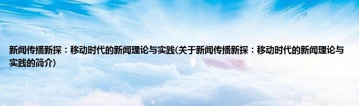 大家好,新闻传播新探:移动时代的新闻理论与实践,关于新闻传播新探:移动时代的新闻理论与实践的简介很多人还不知道,现在让我们一起来看看吧!