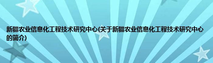 本文关于新疆农业信息化工程技术研究中心的简介就讲解完毕,希望对大家有所帮助。